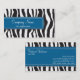 These professional & trendy business cards are perfect for your business! They feature a black & white wild zebra stripes background. On top of the background is a blue bar with room for your business name, tagline, your name, job title & contact details. Very cute design for hair salons, a hair stylist, boutiques, interior designers, makeup artists, fashion and much more!