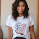 Custom t-shirt for Breast Cancer Awareness month or use any time as a get well gift, sympathy, support or congratulations for breast cancer patients and survivors. The design features a feminine pink cowgirl boot illustration with modern typography design that says "Give Cancer the Boot."