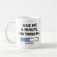 Are you someone who likes to overthink or mull things over for a long time? Then this "Give me a minute, I'm thinking" mug is for you! It's also a great gift idea for a techie, coder, programmer, or any one else in the information technology field.