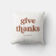 This simple and boho pillow says "give thanks" in retro terracotta typography on a white background, and is the perfect way to decorate your home for Thanksgiving.