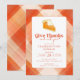 This modern Friendsgiving Thanksgiving invitation features a slice of pumpkin pie illustration and the saying "Give Thanks and Eat Pie" in a stylish font, set on an orange plaid background. It's the perfect way to invite your friends to a fun and festive Thanksgiving celebration.