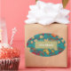 This darling sticker design features a simple leaf pattern on a blue background, with a light green text box for your own text. These would look fabulous on your Thanksgiving invitation envelopes!