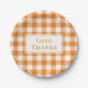 Give Thanks Orange Gingham Plaid Thanksgiving Paper Plate