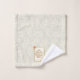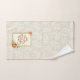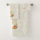 Bath set that reads, “Give Thanks with a Grateful Heart” in a handwritten font, surrounded by a modern pumpkin and leaf glitter frame. Towel background has a subtle leaf and acorn pattern.