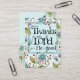 This scripture card can be used either as a business/personal card by customising the text on the back of the card or remove the text and use as a pass-it-on style encouragement card. The art is a hand-lettered original design by artist Karla Dornacher features fanciful flowers in aqua blue and red that are both elegant and whimsical. These floral pattern borders one of the Bible's most quoted verses... "Give thanks to the Lord for He is good" because He is... and we all have so much to be thankful for! This would make a great enclosure to include in notes to the women in your Bible Study, the members of your Retreat Team, or any other woman who needs a little blessing and encouragement in the Lord.
