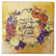 Inspirational Thanksgiving ceramic tile depicts beautiful rustic autumn watercolor floral purple, burnt orange, blue and yellow flowers and greenery. If features a portion of Bible Verse Psalm 136:1, "Give thanks to the LORD, for he is good. His love endures forever." Perfect choice for fall and Thanksgiving season.~