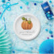 Modern stylish Give Thanks Calligraphy Watercolor Pumpkin Thanksgiving Paper plates for your thanksgiving dinner or thanksgiving party. Personalise with your favourite quote and name. Easy to customise. Happy Thanksgiving!