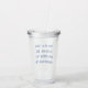 Acrylic tumbler with straw reads, "Give all you have to the poor, and, come, follow me." This quote from Jesus of Nazareth is in blue letters. Great gift for Christians for any occasion.