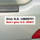 Give U.S. LIBERTY! Don't give U.S. DEBT! Bumper Sticker