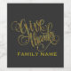 Elegant typography design-Giving thanks in textured haze-green and brown tones. Customisable family name.
