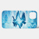 An out-of-the-ordinary, simple, blue and white fractal suggesting a meltwater lake in a valley between glacier-covered mountains. Add your own text.