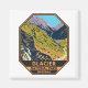 Glacier Park vector artwork design. The park is a wilderness area in Montana's Rocky Mountains, with glacier-carved peaks and valleys running to the Canadian border.