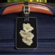 Make your luggage stand out on an airport carousel with unique tag designs! This luggage tag will dazzle you with gorgeous, pure white gladiolas. The ruffled petals stand out against a black background. A smaller gladiola image is on the back along with your personal information. All text can be customised.