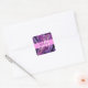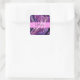 Glam abstract purple, lilac and violet shimmer liquid texture monogram name and initial square sticker. Your custom name and monogram are written in an elegant hand lettered script with a pink background. A perfect birthday or Christmas gift!