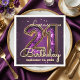 Celebrate this major milestone in luxurious style with this elegant 21st birthday party design. The artwork features a stunning, large number "21" designed with a faux amethyst crystal texture and outlined in a printed gold effect, set against a deep, rich purple background scattered with festive confetti.