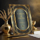 This elegant pedestal sign is part of a sophisticated art deco wedding suite, featuring luxurious frames and intricate, shimmering gold details. The classic designs exude a glamourous vintage charm, with a colour palette of black, glowing gold, and warm grey tones. The ornate details add a touch of sophistication to this timeless design. Use as is with 'Cards & Gifts' heading or add your own text, initials and wedding date easily using the provided template. Search ID1033 to see other wedding products in the design set.