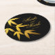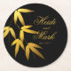 Glam Bamboo Leaves Gold Foil | black Round Paper Coaster