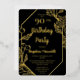 Elegant and glamourous real gold foil leaves and berries frame and text 90th birthday invitation design on a black background. Composite design by Holiday Hearts Designs.