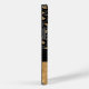 Chic iPhone case, with graphics of a black and gold leopard print, across the top, and a gold glittery look, on the bottom. A real looking black satin ribbon, runs across the middle of the case and is decorated with graphics of a golden swirl and golden yellow gem stone.