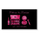 These glam business card magnets feature hot pink metallic cosmetic silhouettes, pink text, and a black background. They're the perfect way to promote your business and connect with potential clients.