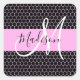 Glam Black Metallic Pink Honeycomb Monogram Name Square Sticker