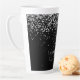 Glam Black Silver Glitter Elegant Monogram Latte Mug. Easily personalise this trendy chic latte mug design featuring elegant silver sparkling glitter on a black background. The design features your handwritten script monogram with pretty swirls and your name.