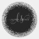 Glam Black Silver Glitter Monogram Name Classic Round Sticker