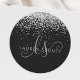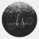 Glam Black Silver Glitter Monogram Name Classic Round Sticker