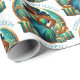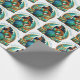 Glam Black Woman Elegant Teal & Gold Christmas Wrapping Paper