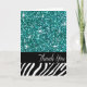Glam Bling Glitter Zebra Thank You | teal Card
