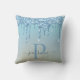Modern Glam Blue Glitter Drips Girly Feminine Luxury Monogram Script Name Pillow