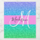 Girly and glam blue, green, aqua and turquoise mermaid glitter sparkles gradient monogram name and initial wine label. Your custom name and monogram are written in an elegant hand lettered script with a pink background. A perfect birthday or Christmas gift!