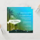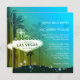Las Vegas strip sign, palm trees and glittering stars with cyan blue & olive green coloured background illustrated on custom Formal Wedding Invitations. ((You can find the matching wedding essentials & favours in this store, Bridal Heaven. Contact ujean4791@gmail.com for custom work and/or coordinating wedding stationery.))