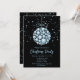 This elegant and glamourous holiday party invitation features a Christmas ornament bauble and blue stars on a black background. The text combines handwritten script and modern sans serif fonts for a classy and sophisticated look. The sparkles and faux glitter add a festive and magical touch.