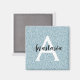 Girly and glam blue silver glitter sparkles monogram name and initial magnet. Personalise with your custom name in an elegant black script and your monogram initial in white. You can change the text colour and font style and size using the customise option.