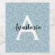 Girly and glam blue silver glitter sparkles monogram name and initial wine label. Personalise with your custom name in an elegant black script and your monogram initial in white. You can change the text colour and font style and size using the customise option.