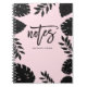 This elegant notebook features a trendy blush pink background, with black tropical leaves decorating the sides. Modern typography says "notes", and there is a spot for your name.