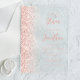 The left-hand edge of this elegant modern wedding invitation features a blush pink faux glitter border. The customisable text combines blush script and sans serif fonts on a clear background.