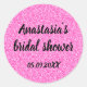 Personalised round sticker for a bridal shower. This glam sticker features elegant black writing and a hot pink glitter sparkles background. You can personalise it with your name and bridal shower date. You can even change the text colour and font style using the customise option.