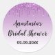 Personalised round sticker for a bridal shower. This glam sticker features elegant black writing and a dripping purple glitter sparkles background. You can personalise it with your name and bridal shower date. You can even change the text colour and font style using the customise option.