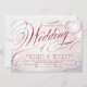Romantic handwriting calligraphy script in faux burgundy glitter on subtle blush sparkle bokeh background, elegant and sophisticated, great wedding invitations for luxury wedding, glam vintage wedding, and traditional wedding in spring, fall and winter.