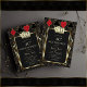 Royal, Romantic, Vintage card design Great Gatsby and Casino themed. It features a Great Gatsby, Roaring 1920's old Hollywood Art Deco style shape, royal faux gold freer-de-lis, gold divider and vintage fonts, a pair of dice, on a black textured background with an Art Deco pattern, as well playing cards suits with a golden edges. Use Personalize tool to add your information. For more, visit please, my Gatsby Casino Collection.