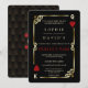 Luxury Casino Royale, Perfect Pair theme card design. It features vintage art deco style, a Roaring 1920's old Hollywood broken frame with faux gold foil Fleur-de-lis, red hearts, Q and K on two corners (simulating playing cards), on black background. Special wording are used as in poker game. On the back faux gold Art Deco pattern and initials between playing cards suits. Use Personalise tool to add your information. For more, visit please, my Casino Art Deco Gold Collection.