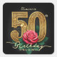 Glam Chic Black Gold Red Rose Floral 50th Birthday Square Sticker