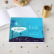 Las Vegas strip sign, tall palm tree silhouettes, glittering stars & cyan blue background illustrated on custom Wedding Guest Books. ((You can find the matching wedding essentials & favours in this store, Bridal Heaven. Contact ujean4791@gmail.com for custom work and/or coordinating wedding stationery.))