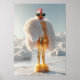 A stylish chicken dressed in a glamourous white fur coat, gold metallic pants, and fluffy boots, accessorised with chunky gold chains and sunglasses, posing confidently on a snowy surface.