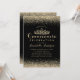 Glam Classic Black Quinceañera Gold Tiara Glitter Invitation