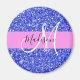 Glam Dark Blue Pink Glitter Sparkles Name Monogram Magnet