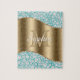 Glam Diamonds on Teal, Gold Monogram, Script Name Jigsaw Puzzle