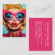 A striking, high-fashion portrait of a glamourous diva with voluminous blonde hair, oversized hot pink cat-eye sunglasses, bold red lips, and electric blue eyeshadow. The look is fierce, retro, and unapologetically fabulous — a pop-art dream in vivid colour.